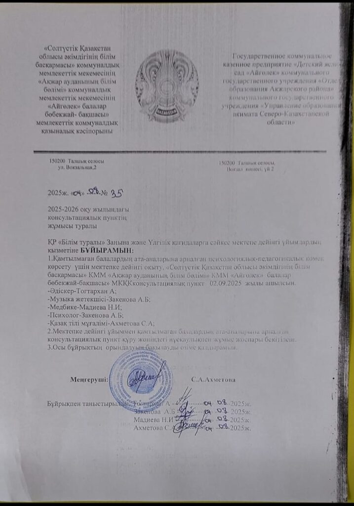 2025-2026 оқу жылындағы консультациялық пункттің жұмысы туралы